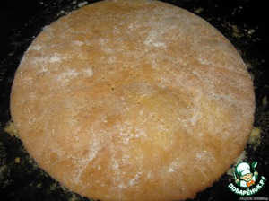 Делим на несколько частей (у меня получилось 26 коржей, поэтому и испекла 2 тортика), раскатываем корж толщиной 2-3мм и переносим на предварительно смазанный маргарином и посыпанный мукой противень с помощью скалки (маргарином смазываем противень только первый раз, потом только притрушиваем мукой)