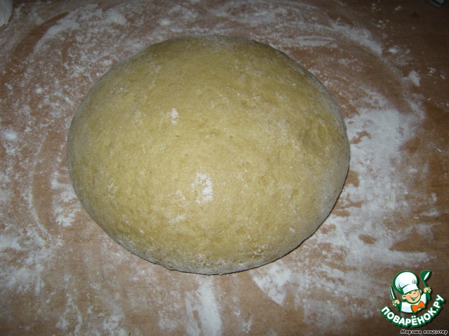 После этого снимаем с водяной бани, добавляем муку и замешиваем тесто (должно быть мягоньким)