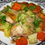 Куриные бедра с овощами в рукаве