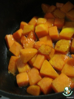 Разогреваем растительное масло в жаровне и обжариваем тыкву 5 минут. Не больше! -