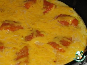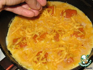 Когда яичная смесь немного ужарится, посыпать тертым сыром.