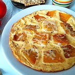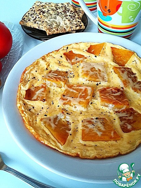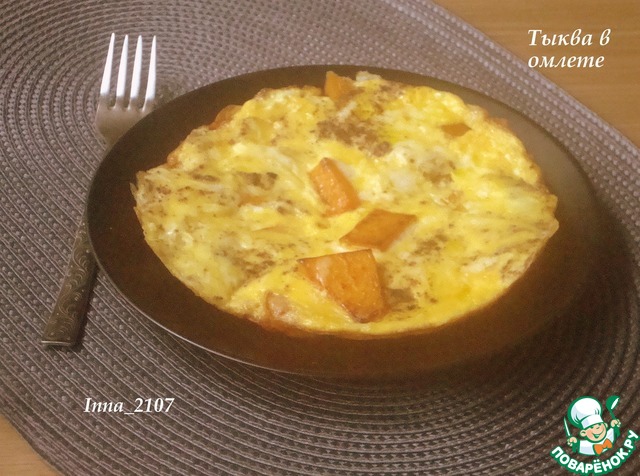 Сегодня на завтрак я приготовила тыкву в омлете. Опять же не знаю, попадает ли этот рецепт на конкурс "Яркое настроение"? Вроде в категорию горячих блюд он вхож :) Ведь не холодным же его есть? Судить вам, дорогие мои коллеги! В приготовлении очень прост и вкусен.