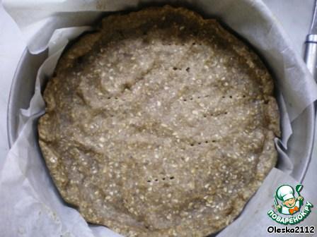В форму диаметром 20-22 см укладываем бумагу для выпечки, слегка смазать растительным маслом и укладываем тесто, формируя бортик. Я укладывала руками, смоченными водой.