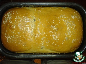 а за 10 минут до окончания выпечки, хлебушек можно смазать яйцом и посыпать кунжутом (по желанию).