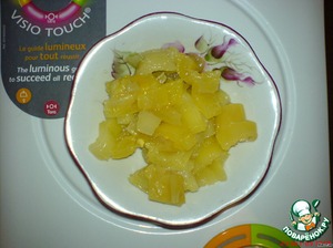 Пока крутится клубок, режем маринованный перец (2 шт.) на небольшие кубики.