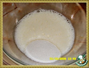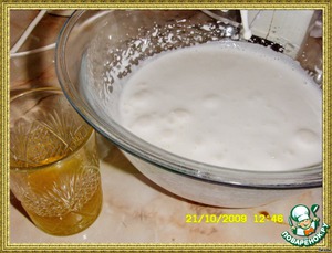 добавьте сахар и продолжайте взбивать в течение 10-12 минут, масса должна стать очень пышной, густой и светлой.