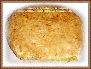 Запеченный картофель с грибами и сыром под соусом "бешамель". Описывать рецепт нет смысла, достаточно присутствие только одного соуса Бешамель. Сытно и очень вкусно. Идея от buxgalter_sofia. Сонечка, спасибо.