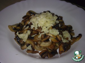 Выложить в тарелку грибы и, сразу, в горячие грибы выдавить чеснок и перемешать, аромат - СУПЕР!!!