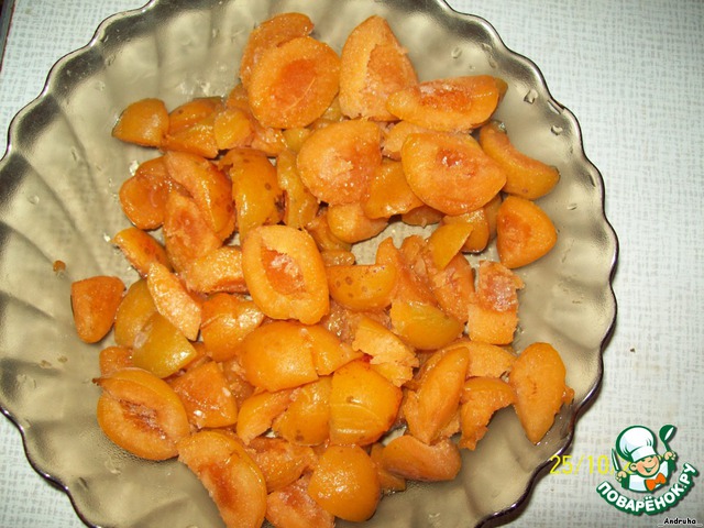 Яблоки, груши и абрикосы протушить немного на сковороде, так чтобы они сохранили свою форму