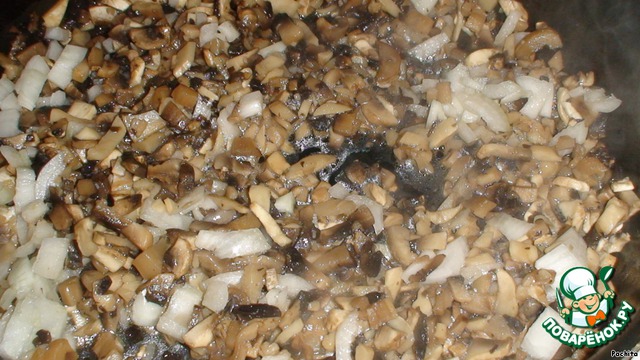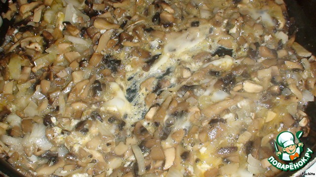 Тщательно перемешивать, чтоб получились небольшие кусочки омлета. -
