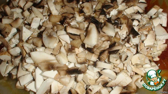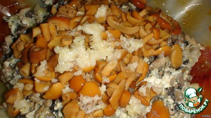 Опята нарезать, чеснок измельчить, укроп мелко порубить.