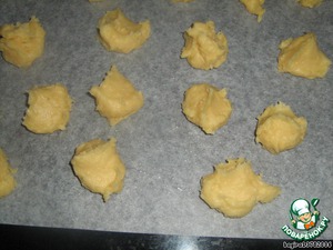 • Теперь ложкой выкладываем на промасленный пергамент шарики и выпекаем 15-20 минут в нагретой духовке при 200 градусах.