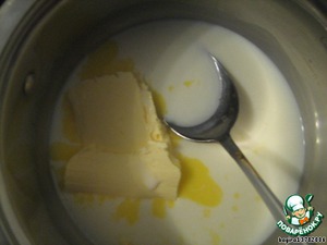 • Готовим эклеры: молоко с солью и маргарином(маслом) кипятим,