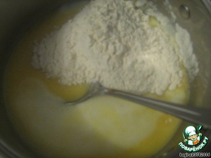 • Затем по одному вводим яйца, каждый раз тщательно вымешивая до получения однородной массы.