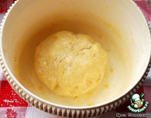 Добавить холодные желтки и сметану, 2 ст.л. сахара, быстро замесить тесто.