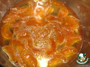 Затем в сироп добавляем дольки и варим на медленном огне 5 минут.