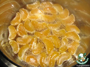 В сироп нужно положить столько долек, чтобы они друг другу не сильно мешали (у меня было пять мандаринок).