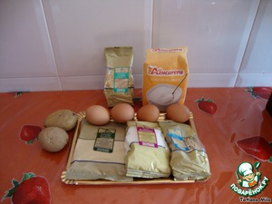 картофель отварить в мундире, остудить, очистить и расталочь в миске, добавить миндальную муку