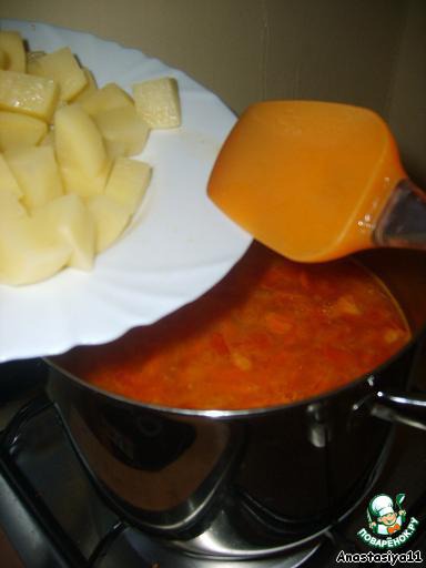 В кастрюлю добавляем картофель, варим 5-7 мин.