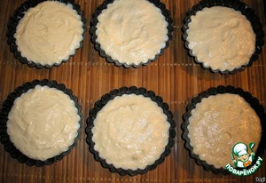 Тесто разлить по формам для тарталеток, смазанных маслом (до середины формочек, т.к. тесто немного поднимется).