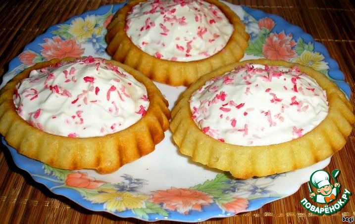 Это самый легкий способ приготовления теста для тарталеток. Готовится очень быстро, тарталетки вкусные, начинка может быть любая - любой крем, творог. Я люблю есть со сметаной.
