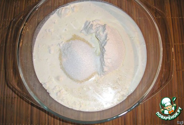 Перемешайте все ингредиенты (муку надо просеять через сито).
