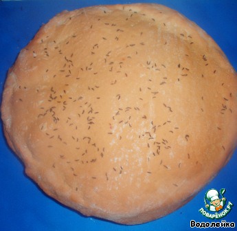 Духовку разогреть до 180*, перед посадкой в духовку хлеб смазать водой и посыпать тмином. Выпекать до готовности минут 40-50