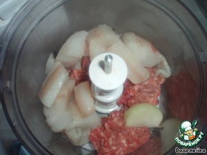 Продукты для фарша(мясо, рыба, лук) измельчить в блендере или пропустить через мясорубку.