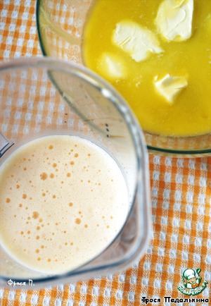 Яйца взбить с солью. Мед и сливочное масло растопить, |