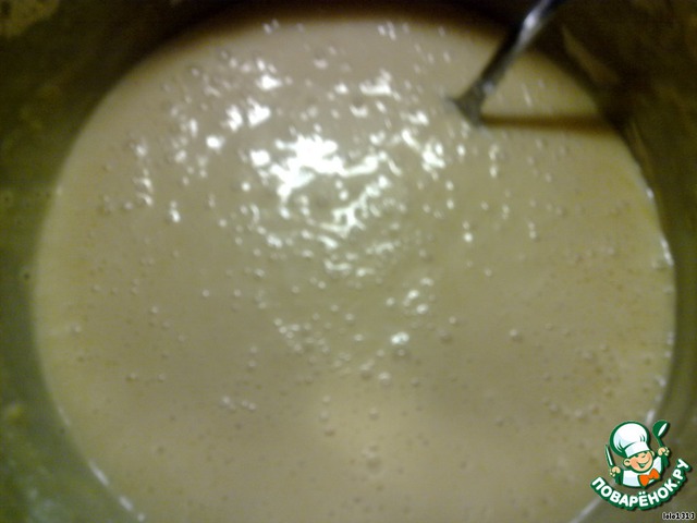 Взбить смесь до однородного состояния, ввести мучную cмесь, размешать так, чтобы не было комочков.