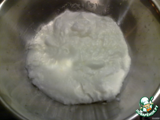 Ввести осторожно 1/4 часть белков, затем ввести остальную часть.