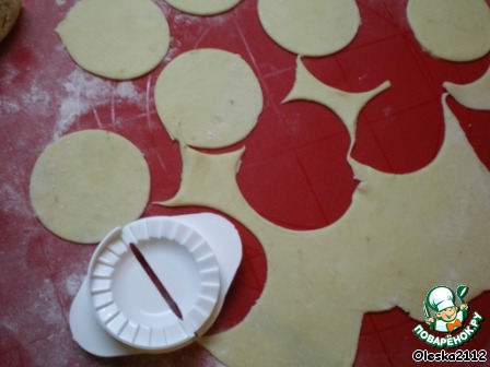 Готовое тесто раскатываю тонко и выемкой делаю кружочки.