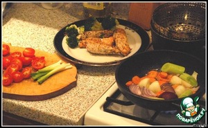 Рецепт «Нежное жареное филе грудки курицы с овощами»: