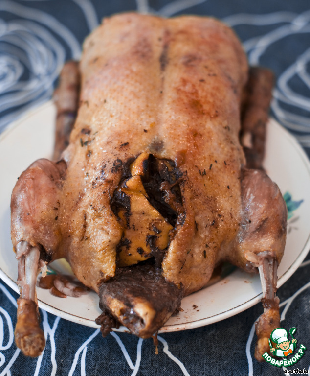 Рецепт «Утка, запеченная с яблоком, тыквой и айвой»: