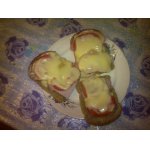 Кусочки хлеба без масла подпрумяниваем с одной стороны на сковороде (с другой не надо, а то получится сухарик) или в тостере
