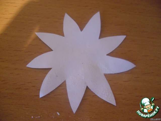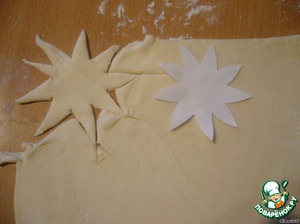 Раскатать тесто, по трафарету вырезать из теста ромашки.