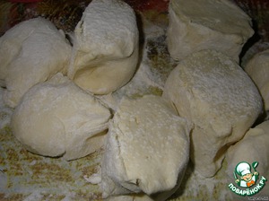Посыпать стол мукой и каждую часть теста ТОНКО раскатать.