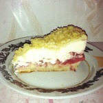 А форму лучше брать разъемную вот почему... Я это поняла, когда встал вопрос, как же этот пирог-то вытащить на блюдо. Перевернуть его - вся крошка так и норовит осыпаться, просто так не достать - он довольно-таки большой, высокий. Но вот как-то справилась...