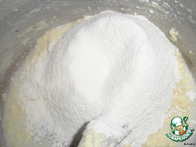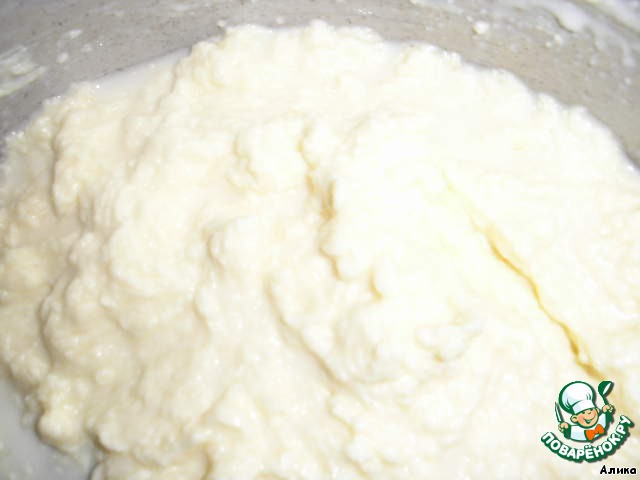 - Творог (100 г для теста, 200г для начинки) — 300 г