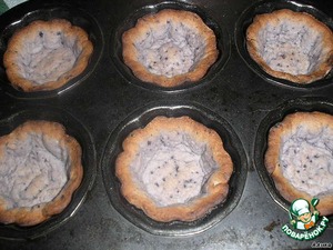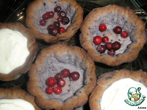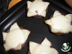 На дно кладем по половинке столовой ложки брусники, заполняем творожно-яичной массой,