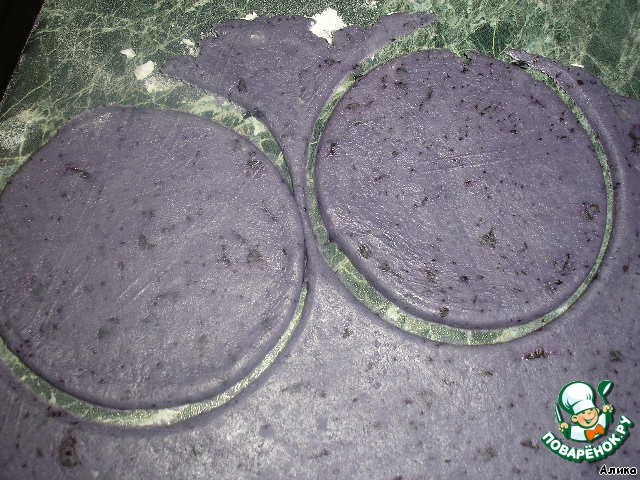Тесто достаем из холодильника, раскатываем пласт толщиной 2 мм, вырезаем кружочки чуть больше диаметра формы для выпечки -