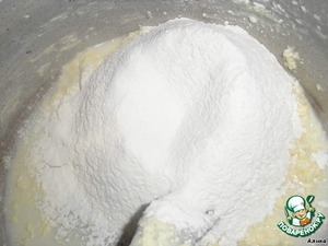100 г творога смешиваем с маргарином, порезанным на кубики, и рубим ножом. Затем добавляем сметану, 1 ст.л. сахара и щепотку соли.