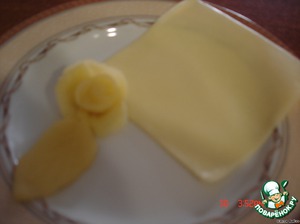 Кусочек сыра немного подогреть в микроволновке и сделать любое украшение.