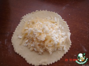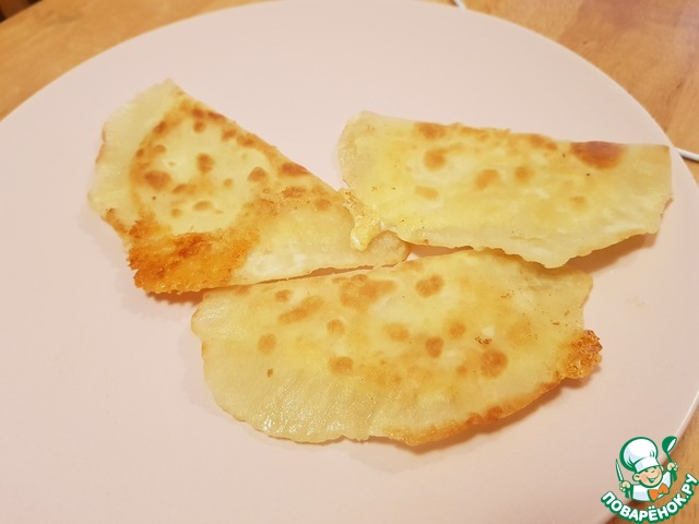 Замесить тесто: в теплое молоко добавить соль, муку, замесить, но не туго, мягче, чем на чебуреки с мясом.