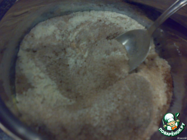 Хорошо перемешать все сухие ингредиенты. Орехи, если их нет, можно не класть.