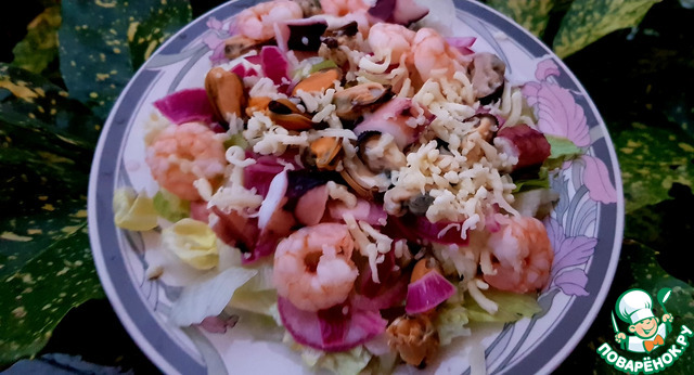 Ингредиенты для «Салат с сыром и морепродуктами»: