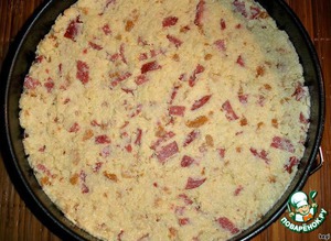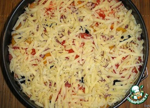 Сверху уложить то, что найдется в холодильнике - грибы, перец, маслины и т. д.