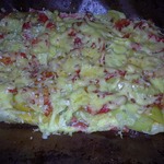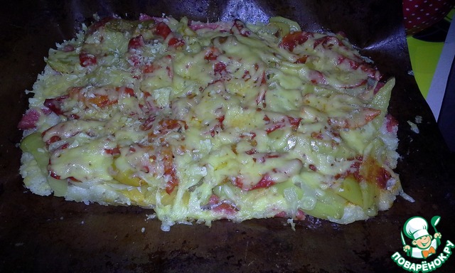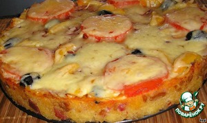 а затем всё остальное. и запекла в мультиварке в режиме "выпечка" . получилось не плохо, но всё же настоящая пицца лучше. Но на скорую руку сойдёт)