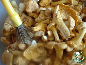 Дома их почистила - гляньте, кисточкой всю грязь "смела", а где уж совсем нехорошо", просто срезала загрязнённое место. Очень крупные грибы порезала крупно, а так целиком оставила... Грибы не мою! Знаю, долго их чистить, но так вкуснее... и что для угоды своего чрева не сделаешь!