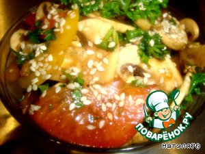 Очень вкусная и легкая закуска из свежих шампиньонов с помидорами.